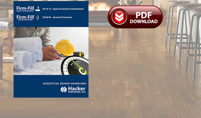 "The Sound of Silence" - how do you achieve it? Hacker Industries, Inc.'s products are integral in achieving improvements in sound and fire attenuation with its full line of FIRM-FILL® Sound Control Mats (SCM) and FIRM-FILL® Gypsum Concrete Underlayments (GCU). With over three billion square feet installed nationwide, FIRM-FILL® SCM and GCU are the acoustical and underlayment solutions for new construction, renovation and repair projects.
